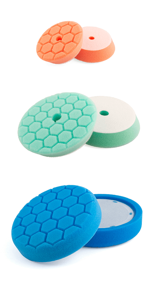 35mm deep detailing pads with a hexagon pattern surface helping to retain compound for an incredibly even finish. All with velour fastening for use with any GRIP backing pad or holder.