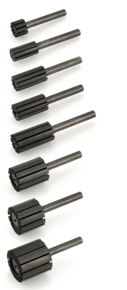 Expanding rubber spiral brand abrasive holders great for hard-to-reach areas.